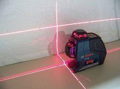 Рівень лазерний має кнопку горизонтальної та вертикальної смуг, вихід лазерного променя, поворотну головку, блокувальну кнопку. Потужність лазера 1 м Вт, відстань 5 м. Використовують для встановлення горизонтальних та вертикальних позначок, як окремо так і одночасно.